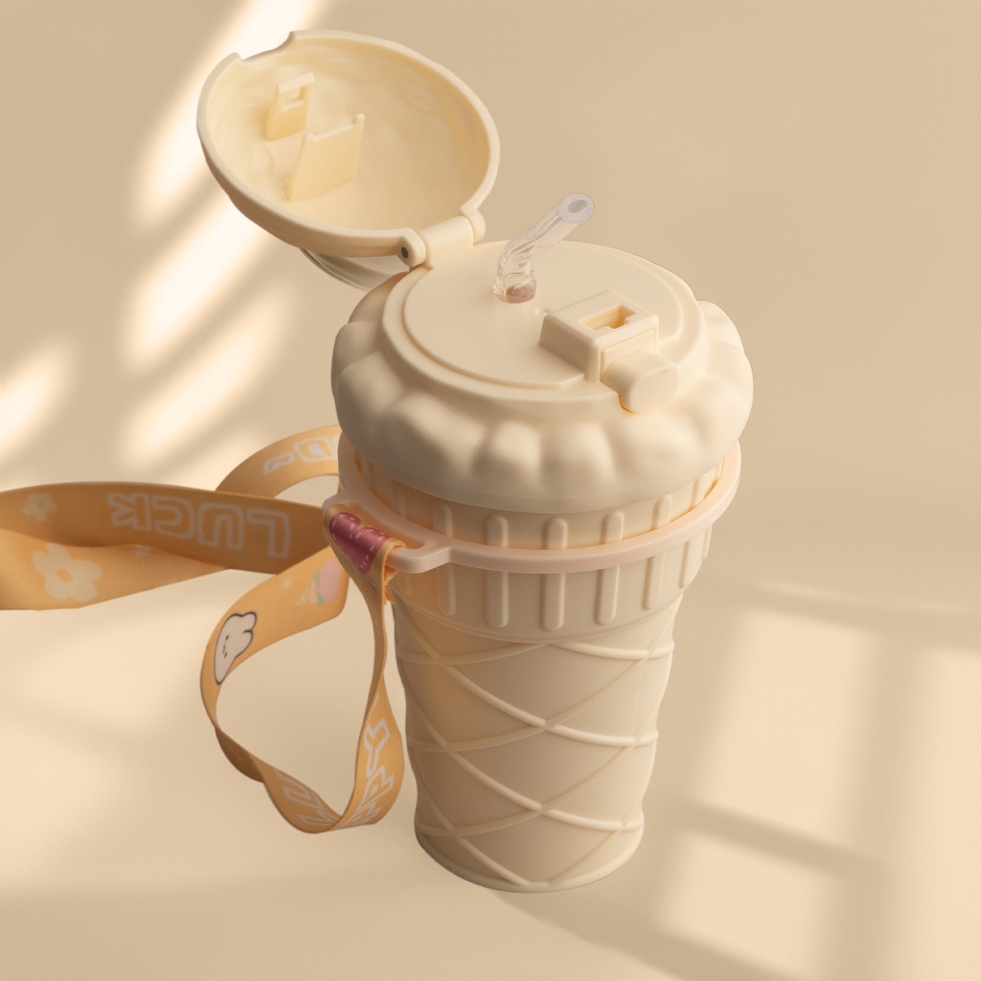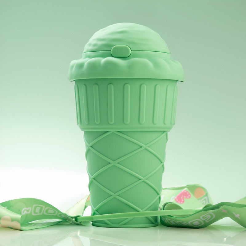 Water Bottle with Straw Ice Cream Shape Drinking