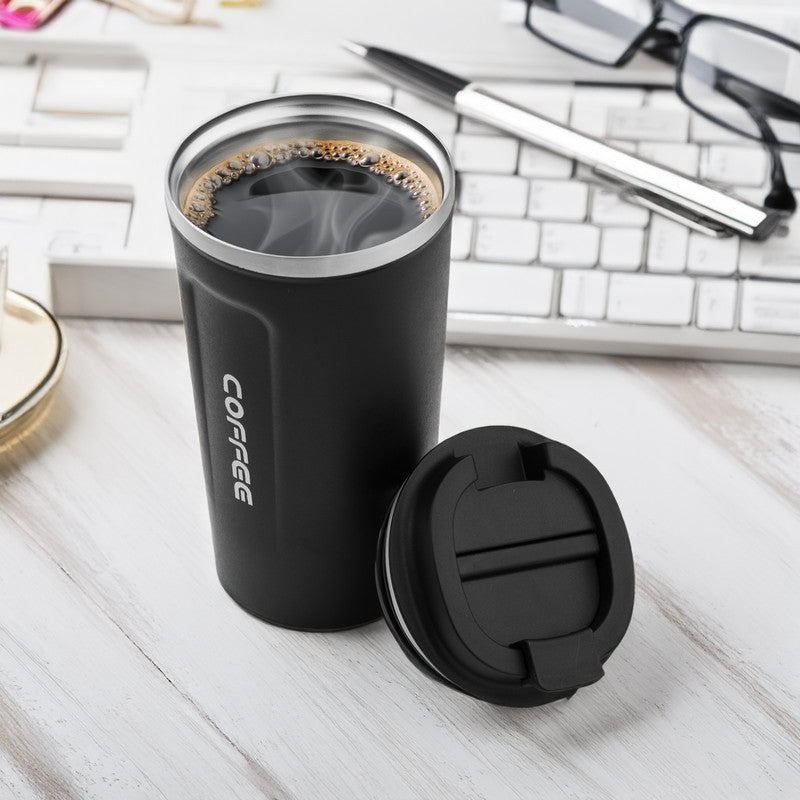 The double wall vacuum insulated travel mug keeps Hot/Cold Beverage